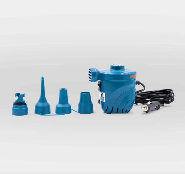 Compact and hardworking, our low-pressure pump fills inflatables to 1 PSI fast. It conveniently plugs into a 12v accessory power outlet (cigarette) and has a 10-ft cord.