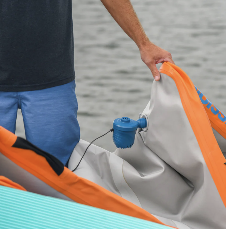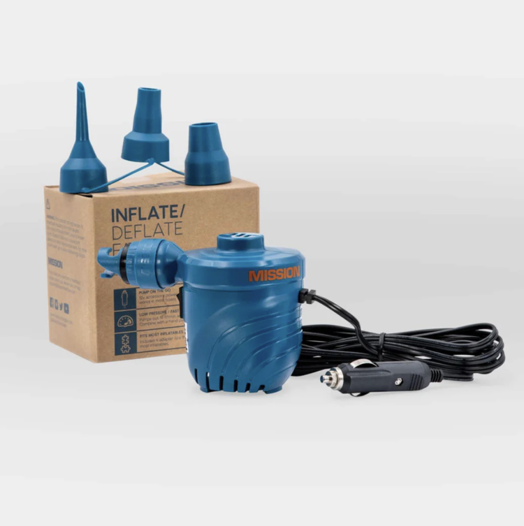 Deploy any inflatable with ease. Our low-pressure pump conveniently plugs into the 12v accessory power adapter (formerly known as the cigarette lighter) so you can inflate your REEF mat from the back of the boat. Our pump comes with a variety of nozzles so you can even inflate your glamping mattress with this thing! No matter what you are inflating, you can count on this pump to save you some backache.