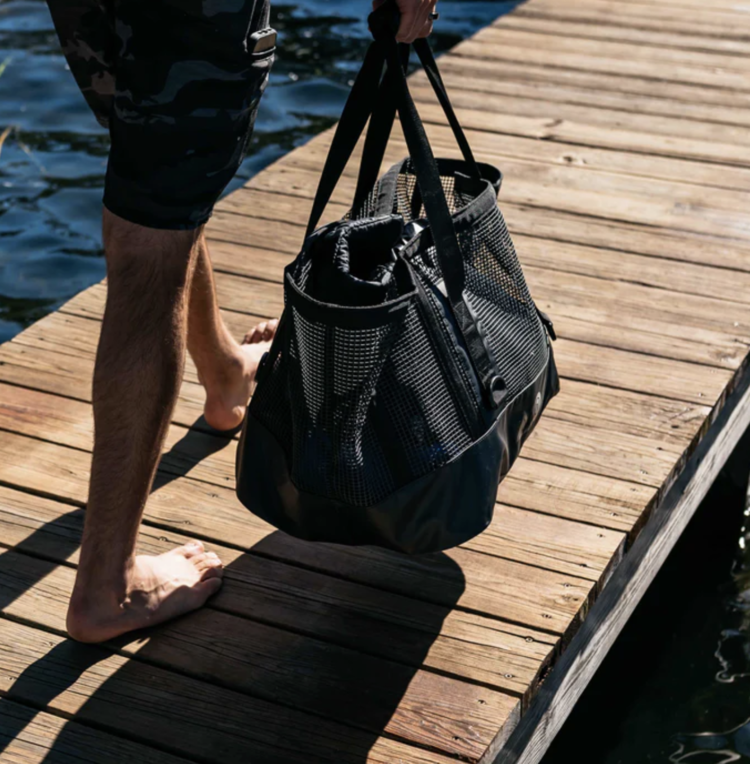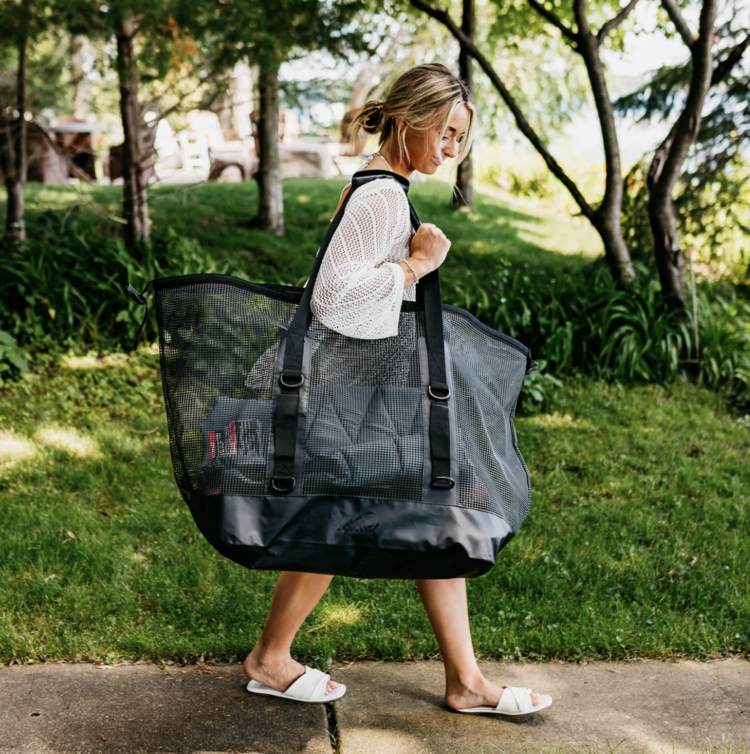 Great for damp bulky items like life jackets or boat covers...or for any Dads out there who refuse to take two trips down to the dock. This thing fits a lot! And because it's mesh, everything will dry out.