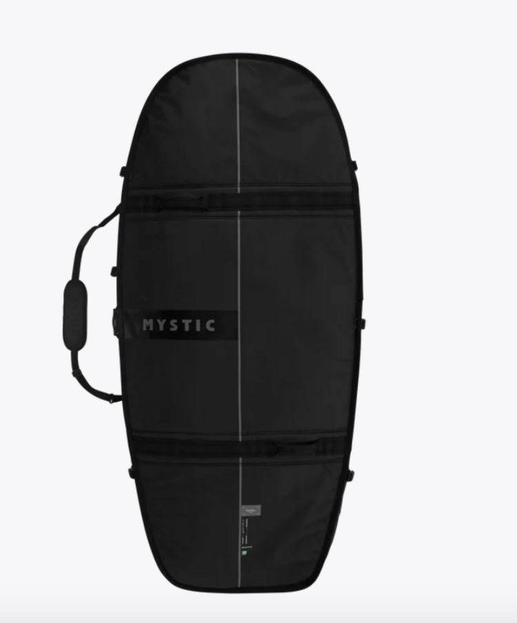 With a compact build and compression straps, the Patrol Boardbag fits up to two foilboards. Use it for your long hauls, as well as day trips. The Patrol offers comprehensive protection, and inside you’ll find a divider to secure your boards, along with a closeable 3D mesh airvent system to keep it all fresh. Store the smaller things in the two transparent inner pockets. From the nose handle to the top handles, this boardbag makes travelling with your gear a breeze.