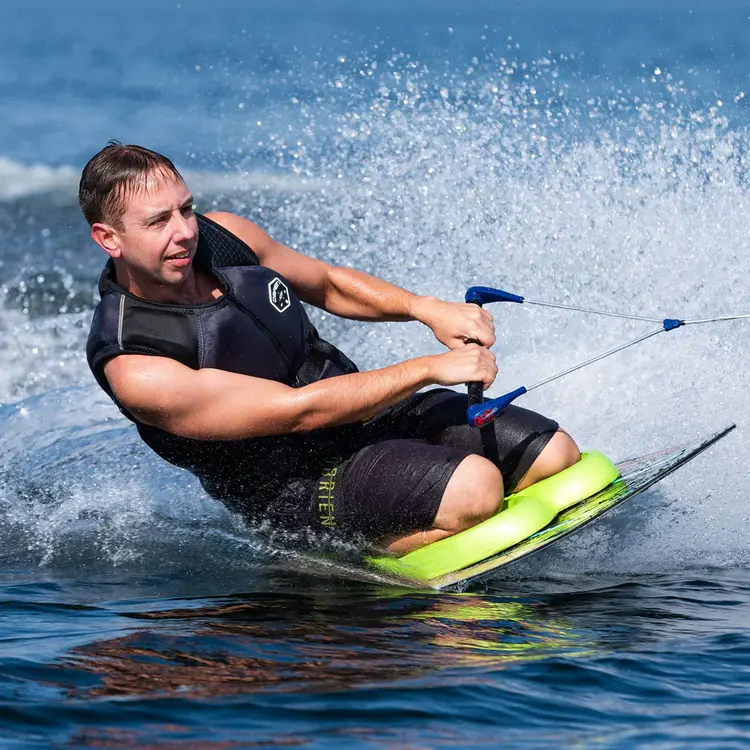 The Sozo is ridden by nearly ALL the top kneeboarders globally, and it's easy to see why. It's explosive, lightweight, and unbelievably maneuverable. The clean, efficient shape quickly initiates turns, edges well through the wake, delivers a clean release, and is very forgiving. Its Fusion Core gives the board an incredibly light and lively feel on the water that takes it above and beyond any other performance kneeboard on the market. The Sozo pad is state-of-the-art, too. It is extremely supportive, fully customizable, and softens landings like no pad ever seen. It truly is the ultimate board for boat riding.