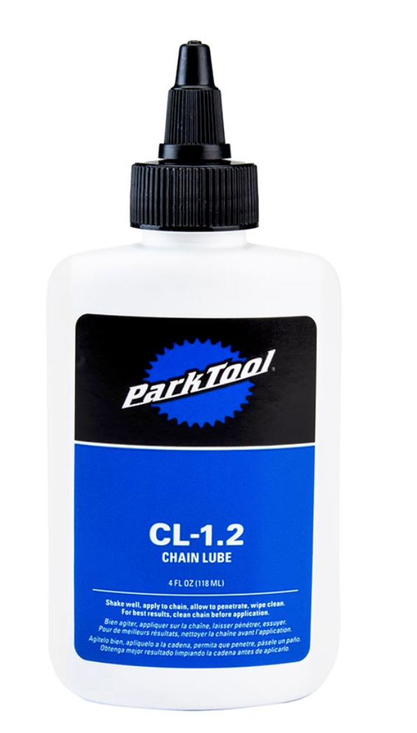 Regular lubrication of bicycle chains addresses annoying squeaks and noises, and extends the life of the chain and drivetrain components. Formulated using a proprietary blend of oils, Park Tool CL-1.2 Chain Lube works great in wet or dry conditions. It penetrates, reduces friction, prolongs component life, displaces moisture, and protects parts from rust and corrosion. Compatible with all bicycle chains. Also works great as general-purpose light lubricant for use on bicycle brake and derailleur cables and housing, spoke nipples, and derailleur and brake pivots.