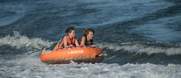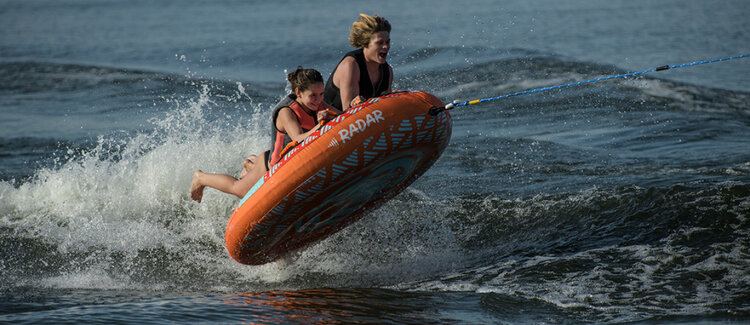 Our classic Orion tube is a round adventure waiting to happen. Spoon-O-Vation allows this tube to carry speed and pop off the wakes!