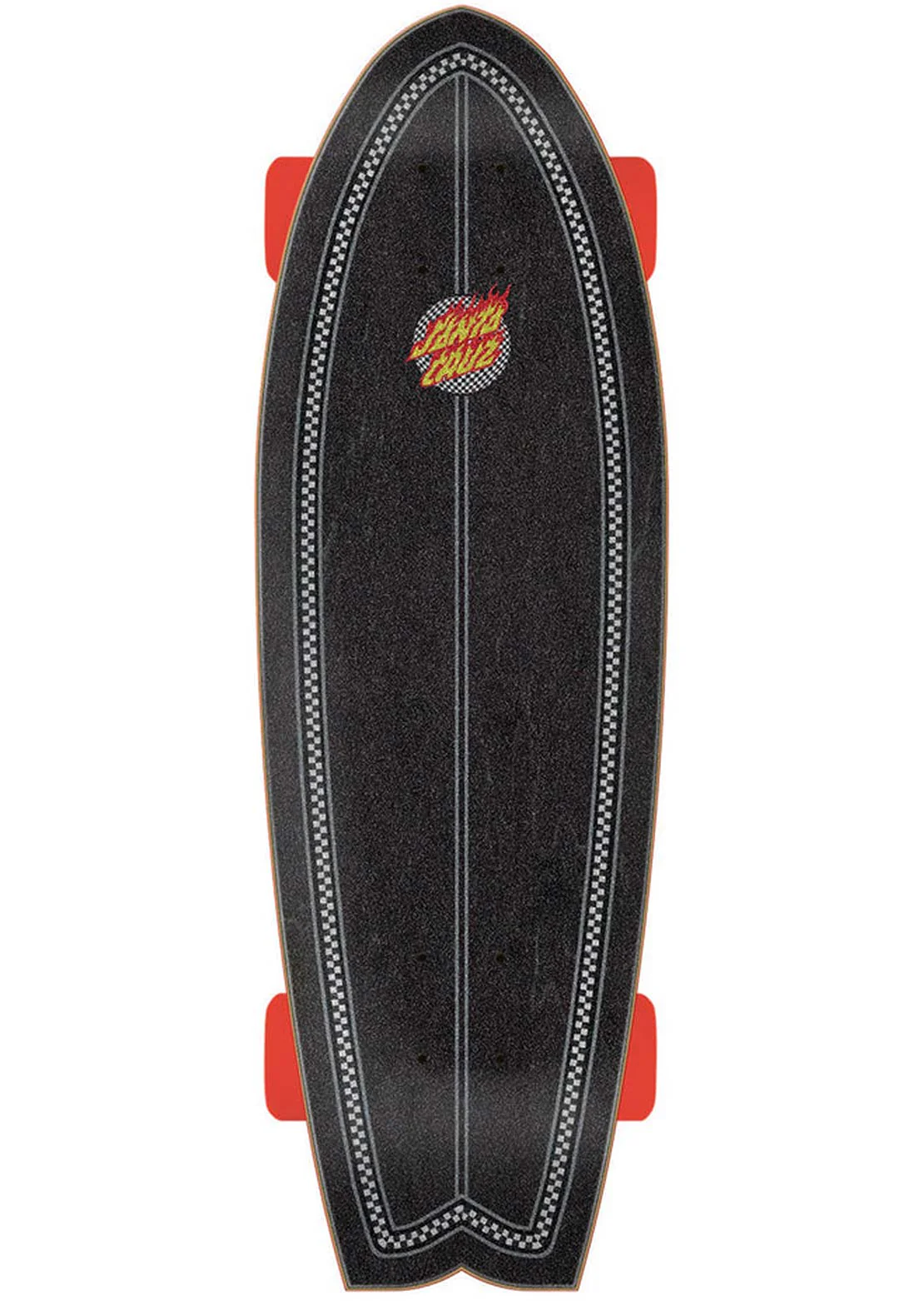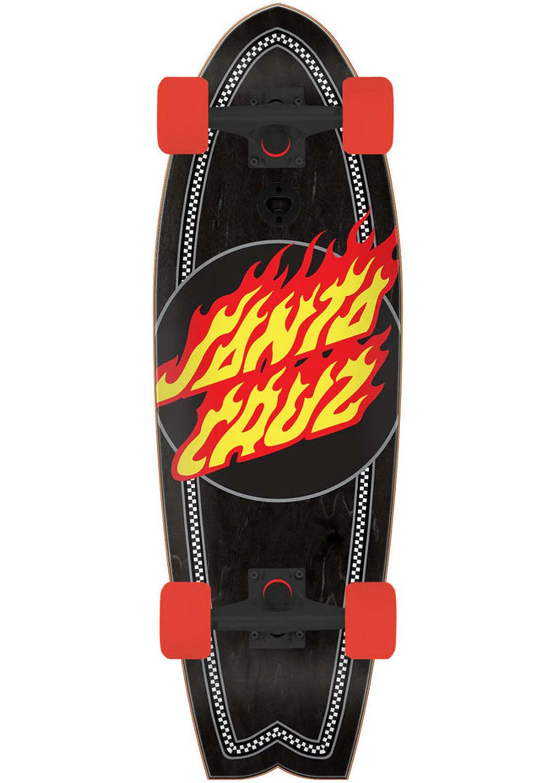 • Flame Dot Check Shark 27.7" Cruiser Skateboard Complete from Santa Cruz.