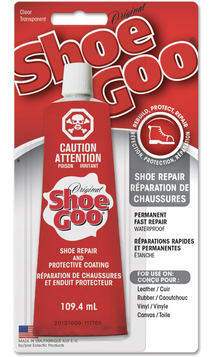 • Shoe GOO is the #1 shoe repair adhesive! It’s ideal for fixing worn soles or damaged heels, coating shoes to prevent premature wear. The unique formula is designed for strong abrasion resistance and better adhesion to flexible materials.