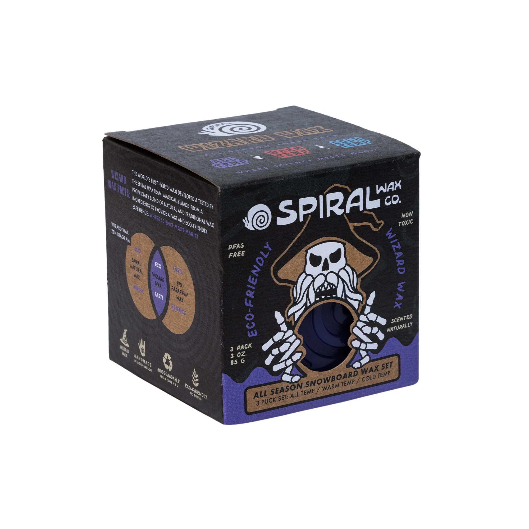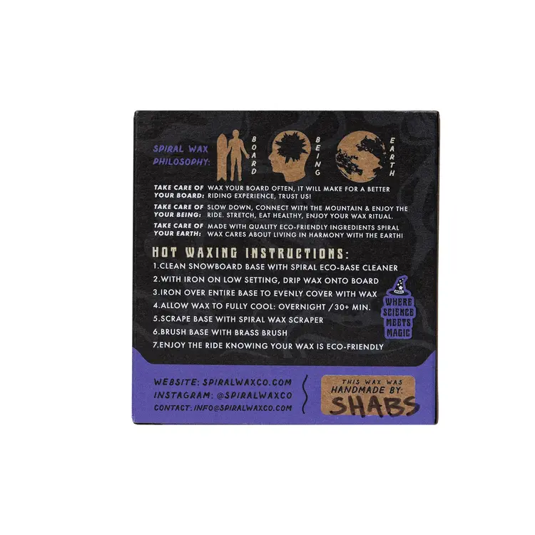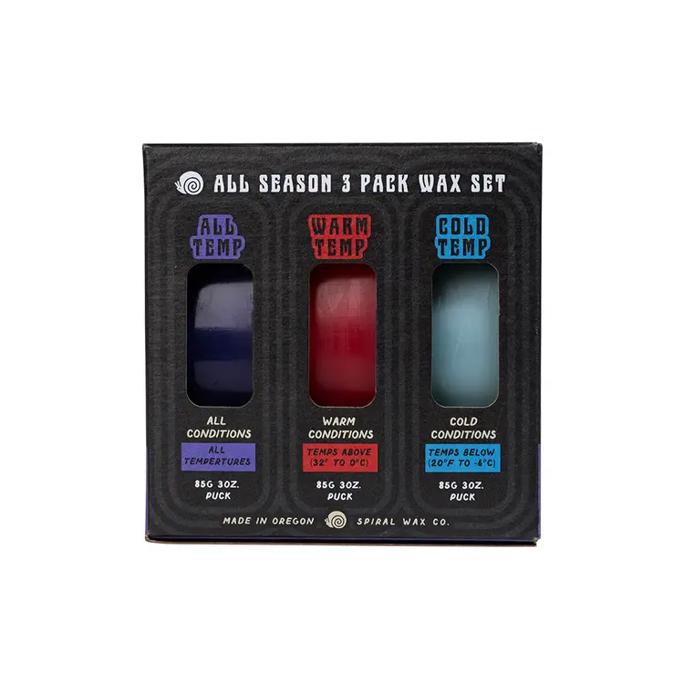 All season Wizard Wax 3 puck set. The wax wizard designed this set to satisfy your entire winters waxing needs. Weather it be a warm park day, deep winter pow day or a classic groomer day: pick a wax and go. 1 Warm Temp puck / 1 All Temp puck / 1 Cold Temp puck. Magically made from a proprietary blend of natural and traditional wax ingredients to provide a fast and Eco-friendly experience. Where science meets magic!Wizard Artwork by: Dave Banks