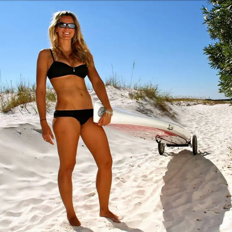 The majority of the weight of the board rests on the SUP Wheels®.