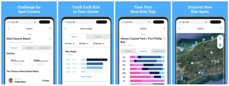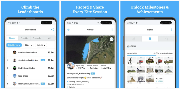 Record a session with WOO and you're joining a Global Kiteboarding Community that shares sessions every day on the app. Collectively the community contributes to a Kite Spot Map, Leaderboards, Activity Feed, and a shared love for the sport.