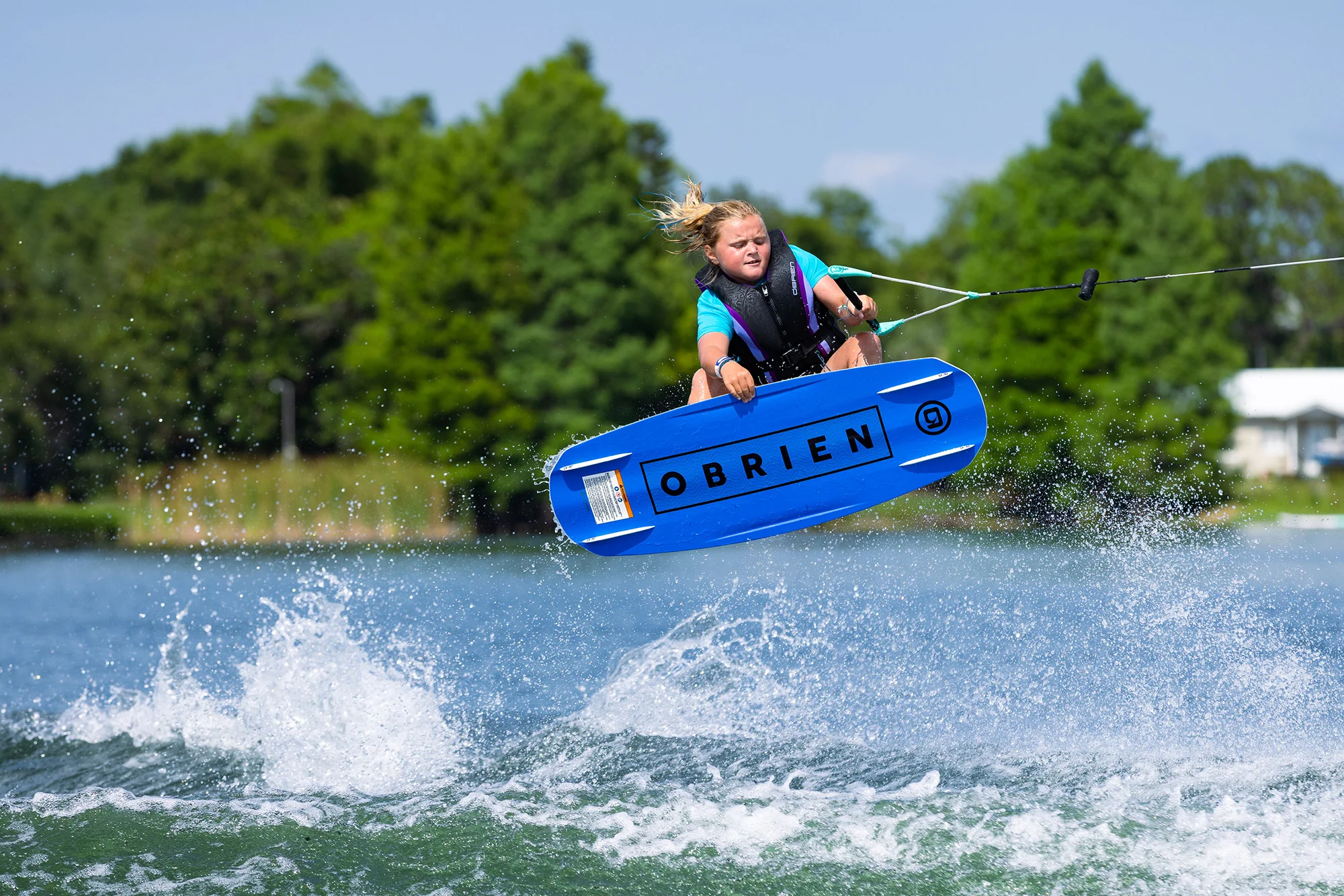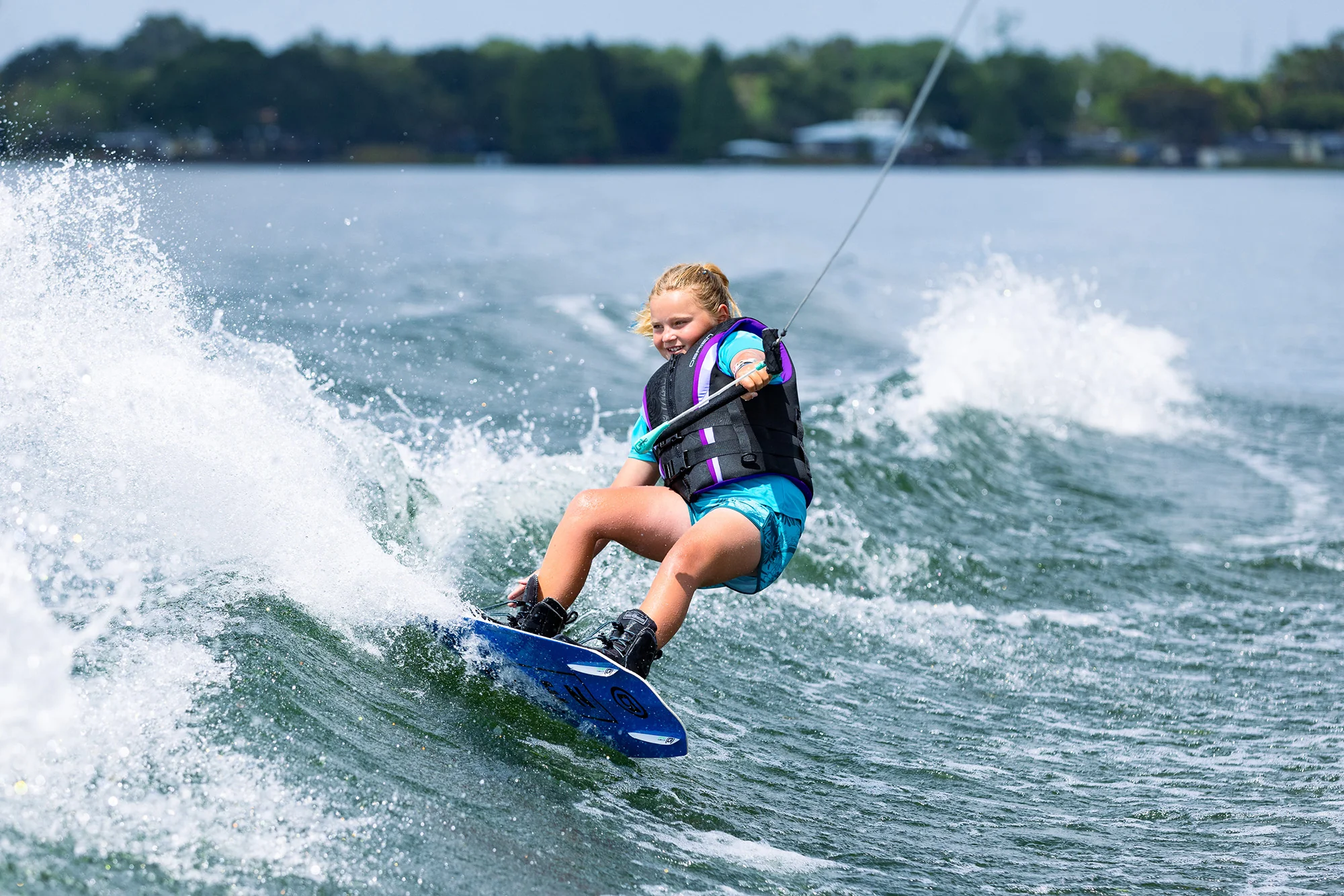 Behind the boat and in the park, there is no better board for young rippers than the Hooky. With its forgiving shape, reduced width, and Feather Core, the Hooky offers superior maneuverability and easy edging for smaller/lighter riders to enhance their performance. Its Progressive Rocker delivers a nice kick off the wake and plenty of airtime to add more moves to their bag of tricks. The Hooky can also navigate the cable park with ease thanks to its Dual Hybrid Rail Construction and DuraRail tip and tail. These features make the board extremely durable and capable of handling all of the abuse these riders put their gear through.